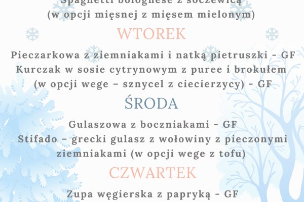 Zapraszamy Was serdecznie na nasze pyszne i zdrowe obiady. Od poniedziałku do piątku, w godzinach… obiadowych. Jest również opcja na dowóz przez stronę/aplikację WOLT! Mamy też...