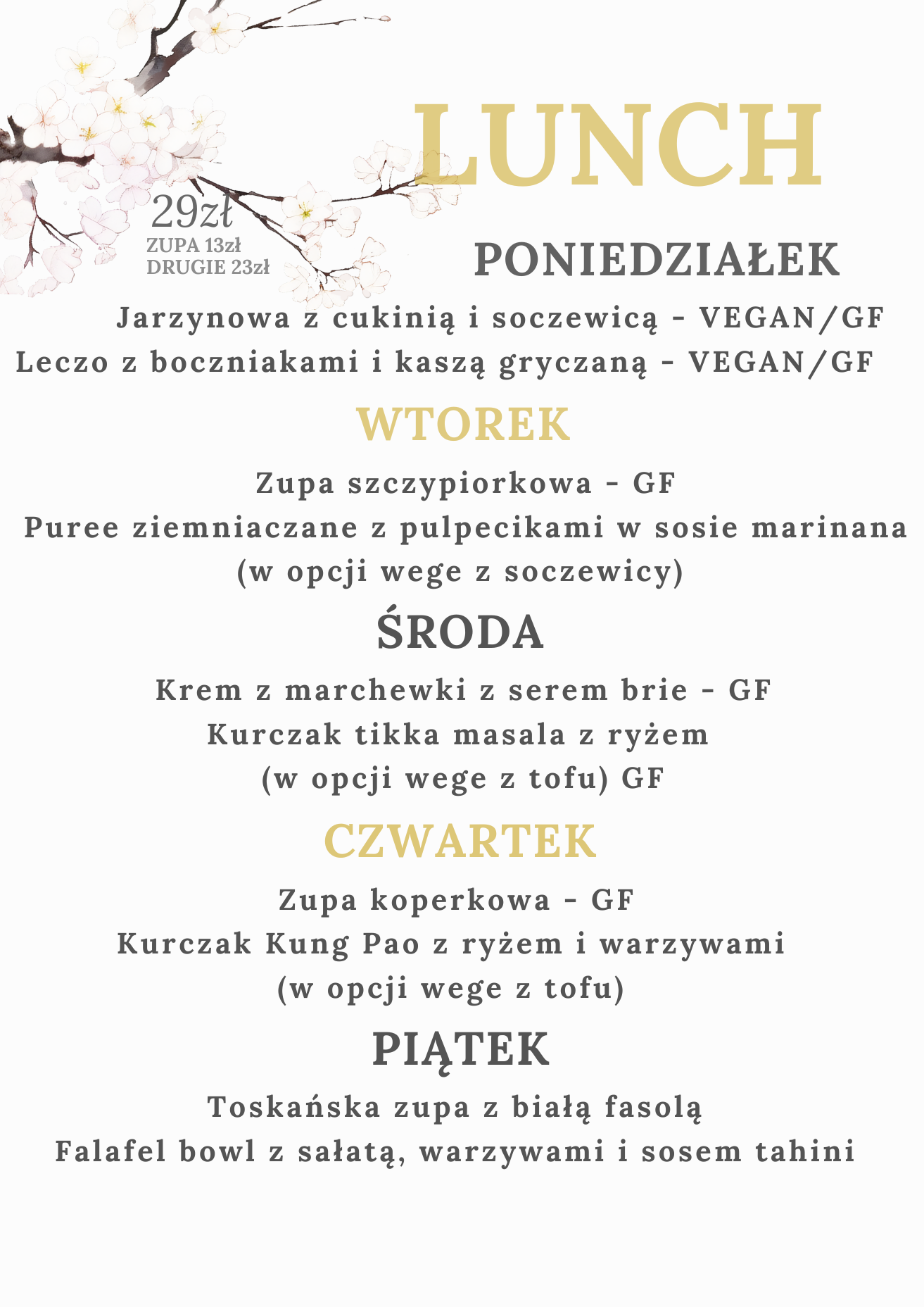 Zapraszamy Was serdecznie na nasze pyszne i zdrowe obiady. Od poniedziałku do piątku, w godzinach… obiadowych. Jest również opcja na dowóz przez stronę/aplikację WOLT! Mamy też w swojej ofercie wszelkiego rodzaju napoje, kawy, soki, drineczki czy pyszne wina. Jesteśmy otwarci codziennie, 7 dni w tygodniu, od 9:00 rano, do ostatniego gościa. Nie zapominajcie również o naszej księgarence i sklepie płytowym. Zapraszamy!